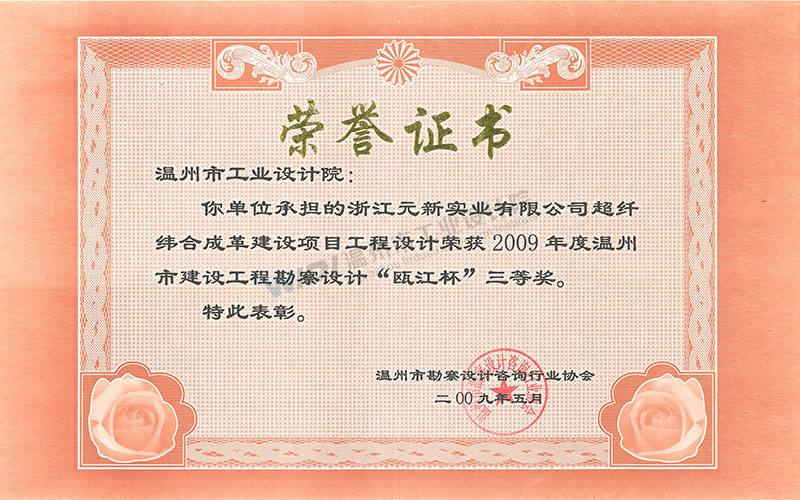 浙江元新實業(yè)有限公司超纖維合成革建設項目工程設計 甌江杯三等獎