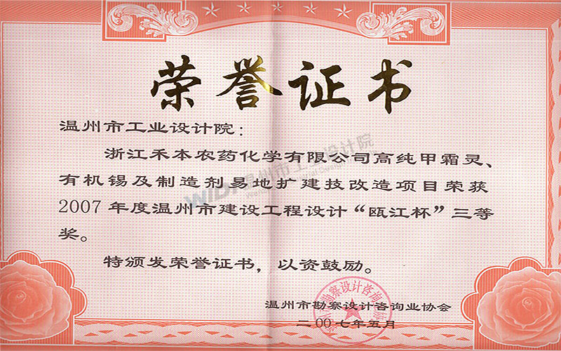 浙江禾本農藥化學有限公司高純甲霜靈、有機錫及制劑異地擴建技改項目 甌江杯三等獎