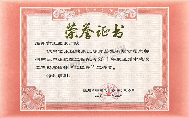 浙江瑞邦藥業(yè)有限公司生物制藥生產線技改工程設計 甌江杯二等獎