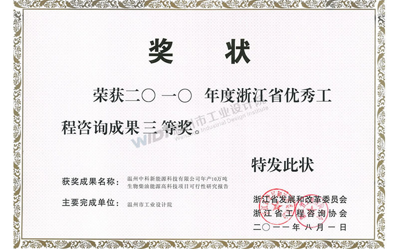 溫州中科新能源科技有限公司年產10萬噸生物柴油能源高科技項目可行性研究報告 省優(yōu)秀咨詢成果三等獎